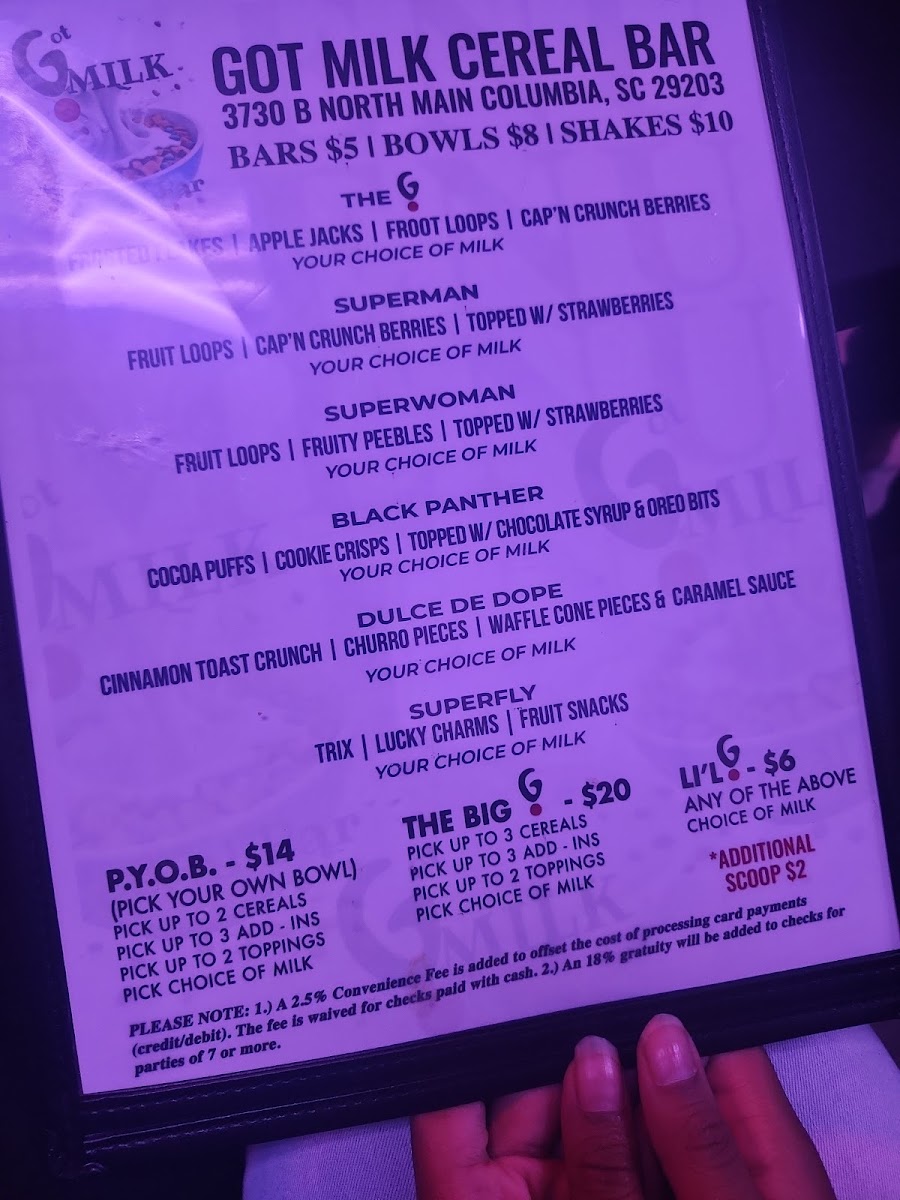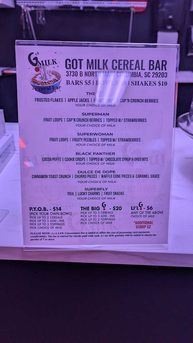 Welcome to Got Milk Cereal Bar, a vibrant gem nestled next to Papa John's at 3730 N Main St, Columbia, SC. This delightful establishment is a celebration of cereal-inspired treats and milkshakes that will transport your taste buds back to your childhood.